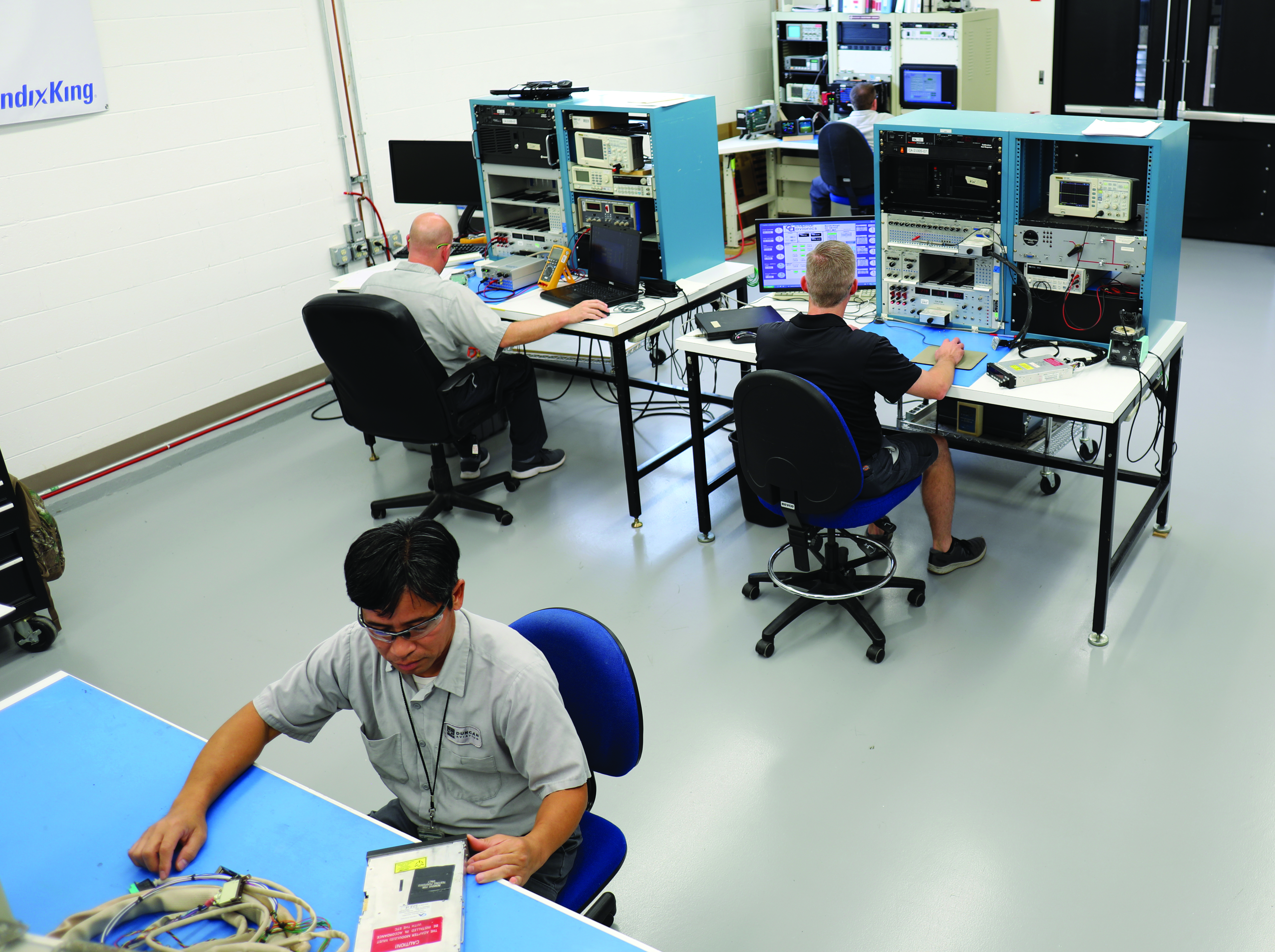 Eight Duncan Aviation technicians received factory training with more onsite training performed at the Duncan Aviation Avionics Instruments Repair facility in Lincoln, Nebraska. One thousand square feet of shop service space was added to accommodate 50 additional test sets and 12 new workbenches measuring 60 linear feet. The repair facility is in the process of hiring up to 12 new avionics technicians and six sales and support personnel in the coming months.