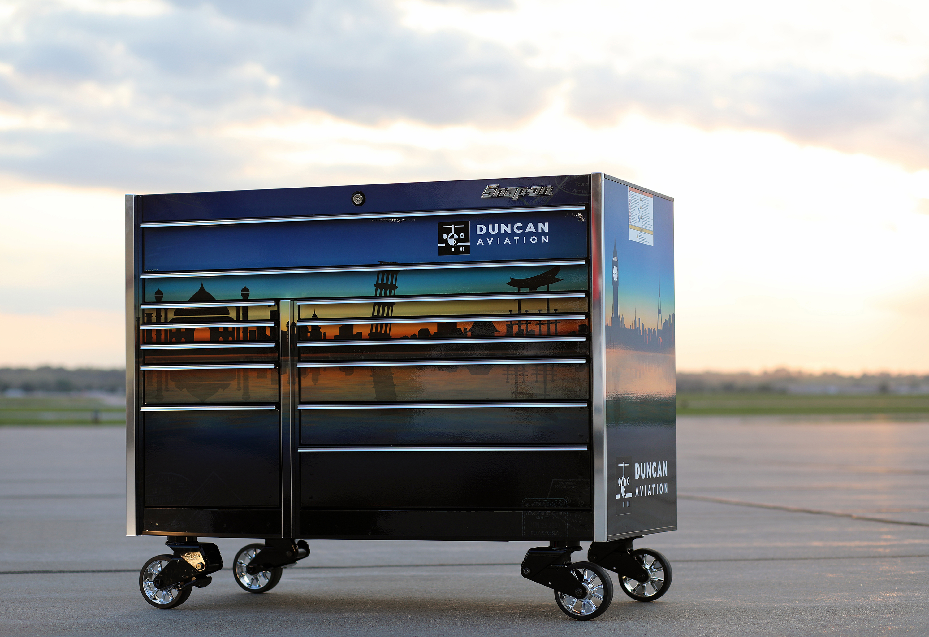 “It’s a beautiful piece of art depicting an aviation-themed wrap,” Duncan says. “I am sure some lucky student will be very proud to store his or her tools in it. Who knows, maybe the toolbox will even grace a Duncan Aviation hangar again sometime in the future.”