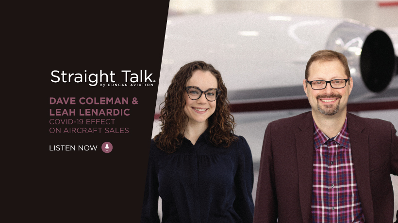 During the onset of the COVID–19 pandemic, Duncan Aviation rolled out special edition podcasts focused on the current business aviation market and what Duncan Aviation is doing during these turbulent times. Duncan Aviation’s Straight Talk podcasts are available through a variety of platforms including Spotify, Apple Podcasts, and the company’s website.