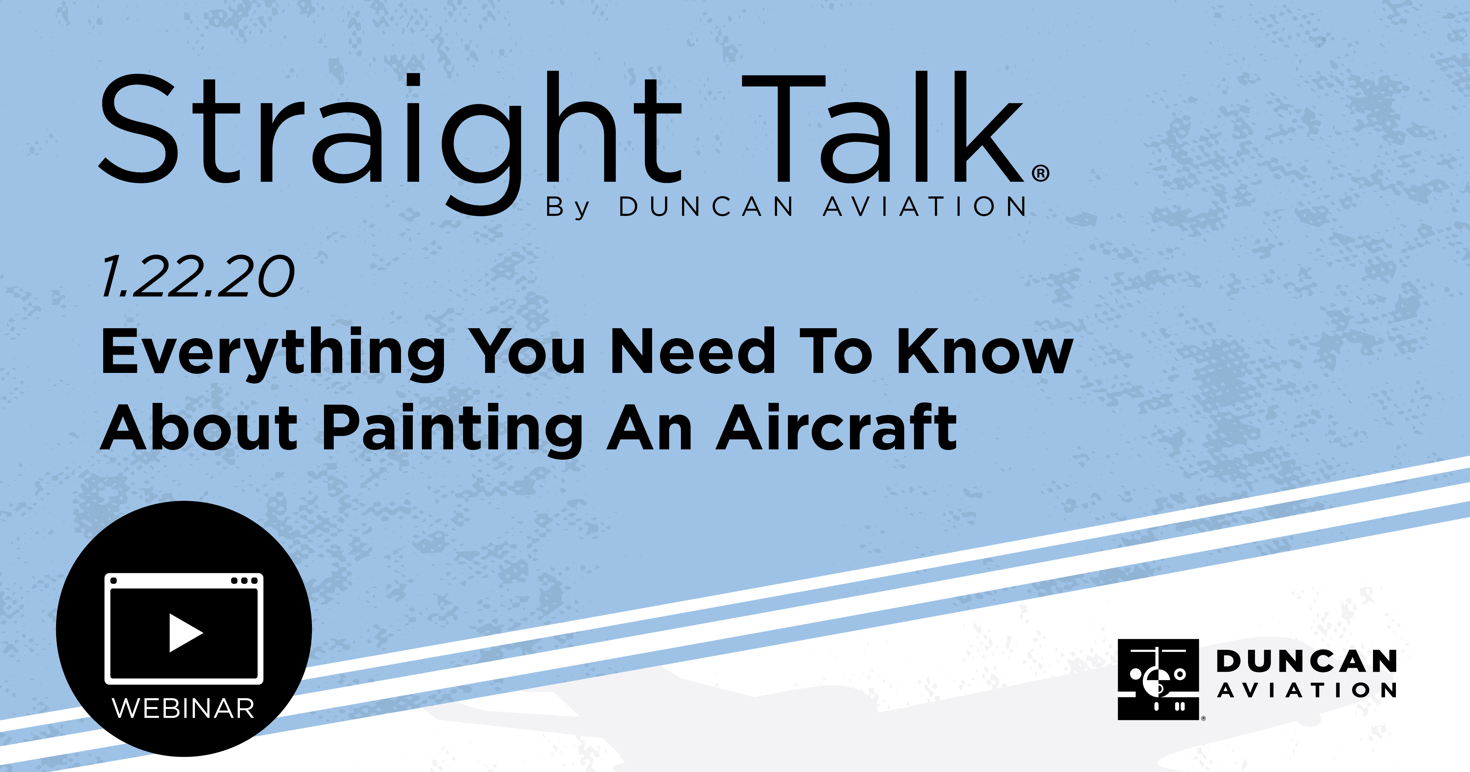 If you’re considering painting your aircraft, or want to learn more about the process, you’ll want to tune in to the Duncan Aviation Straight Talk Webinar January 22nd at 11 a.m. CST to learn more about: