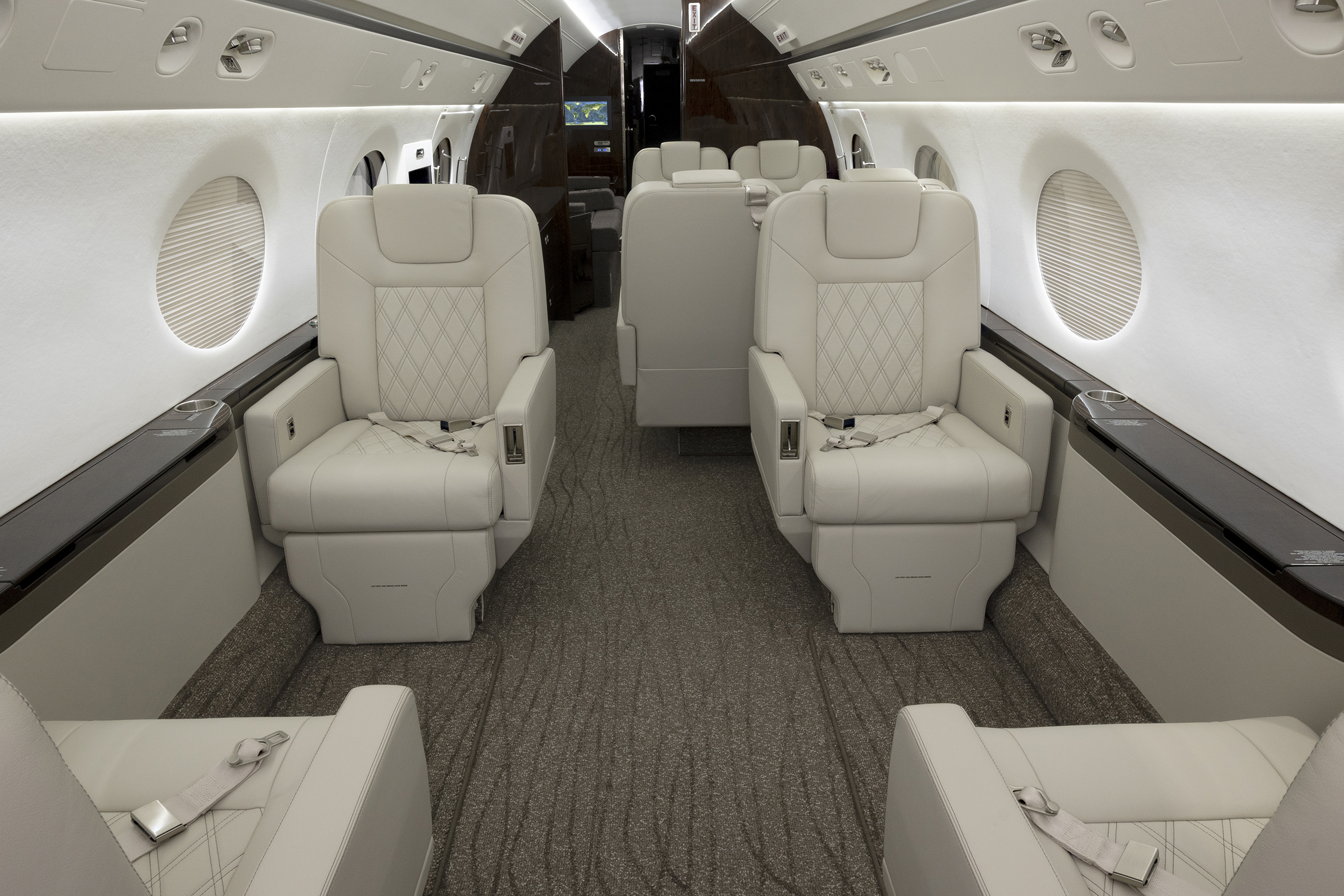 Lead Designer Jack Bauder said the interior of this aircraft is highlighted by new seats and handrails inspired by the Gulfstream 600.
