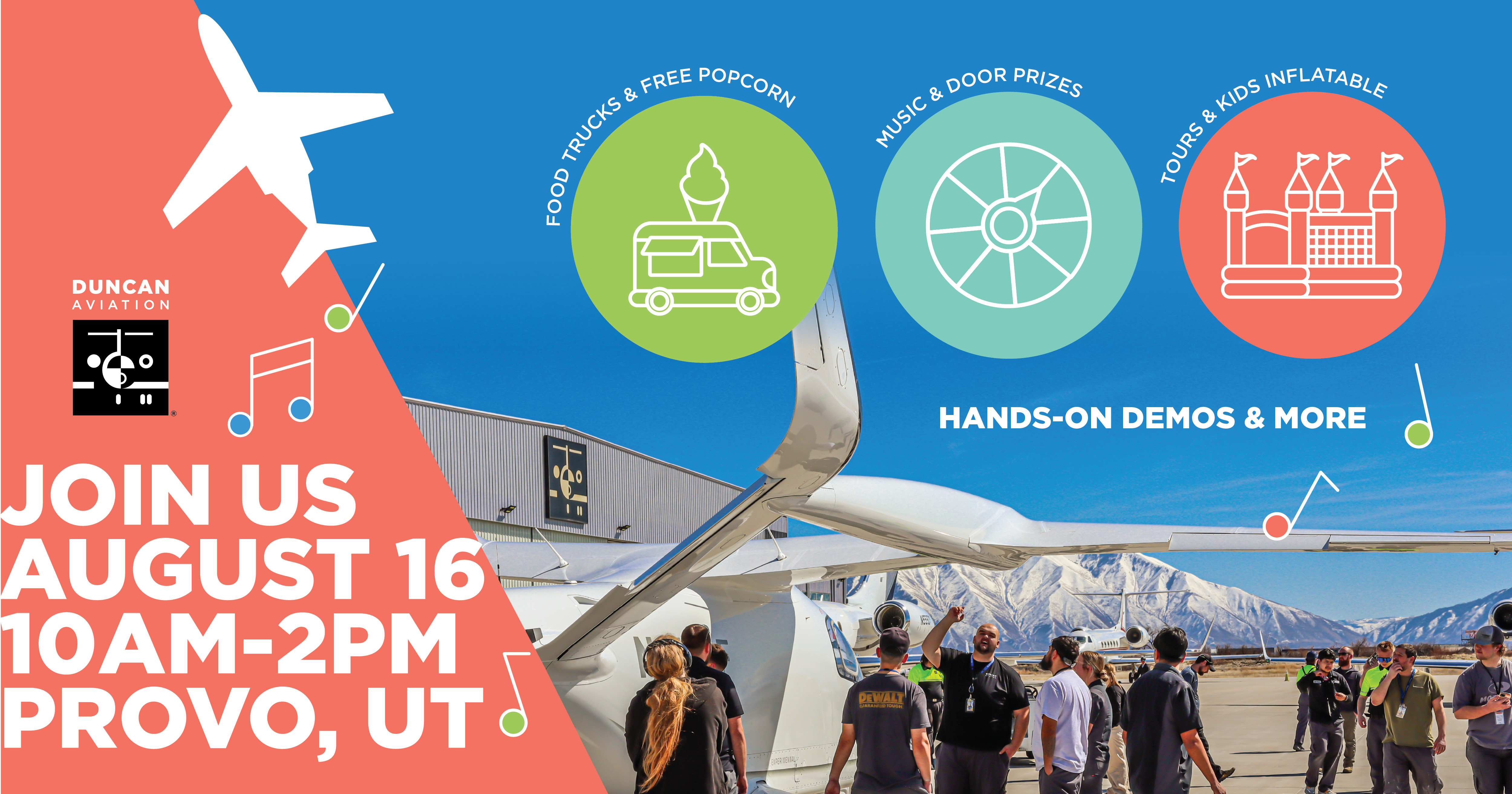 LINCOLN, NEB. — Duncan Aviation’s business aircraft full-service MRO (Maintenance Repair Overhaul) facility in Provo, Utah, will be holding an open house on Saturday, August 16, from 10am-2pm at its location near the Provo Airport: 262 South 3800 West, Provo, Utah, 85601.