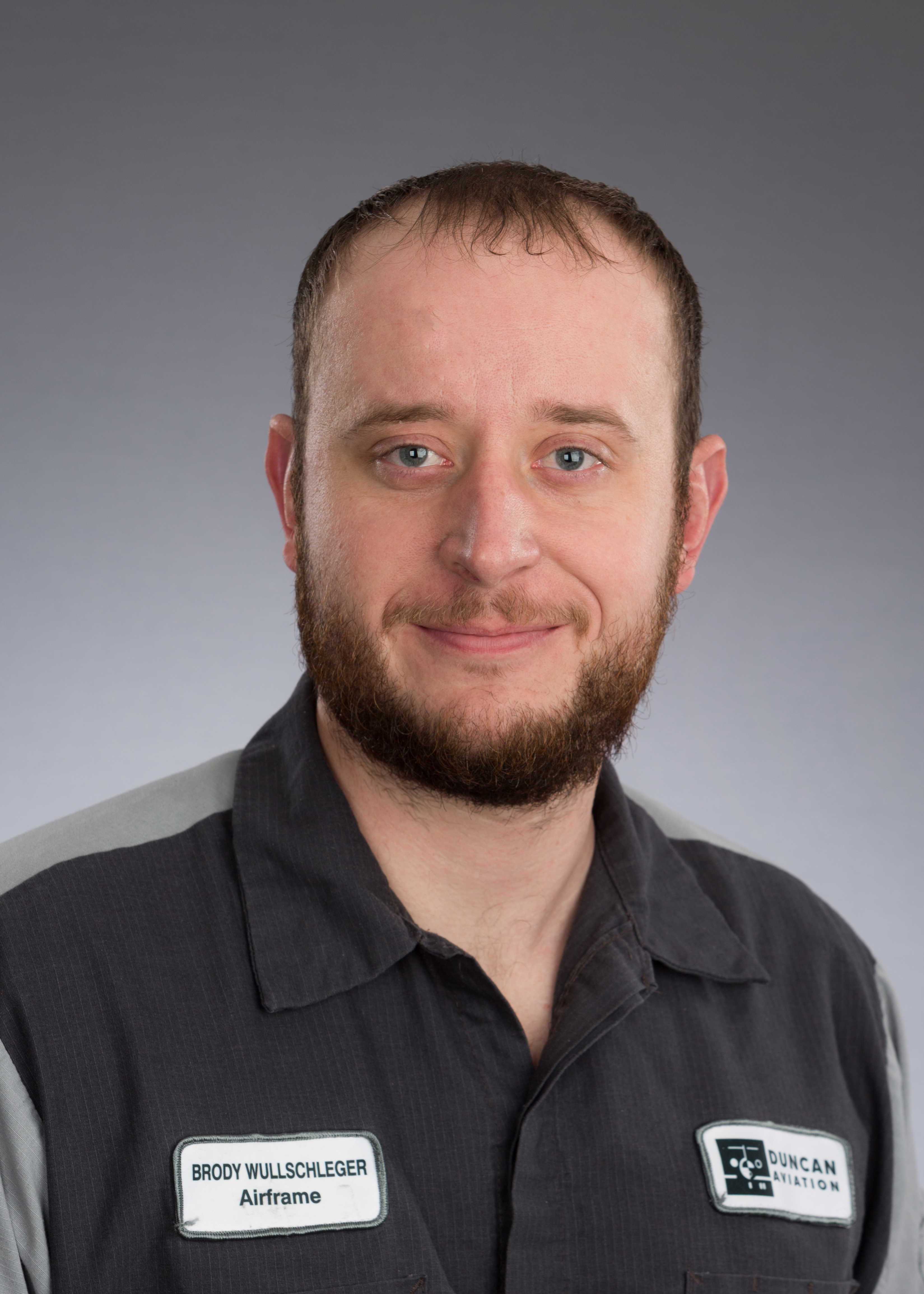 Wullschleger, who had served as an MP in the US Army, had no aviation experience when he started at Duncan Aviation as a Tech Helper a little more than two years ago. While working full time, Wullschleger began studying and attending classes for his Airframe certification.