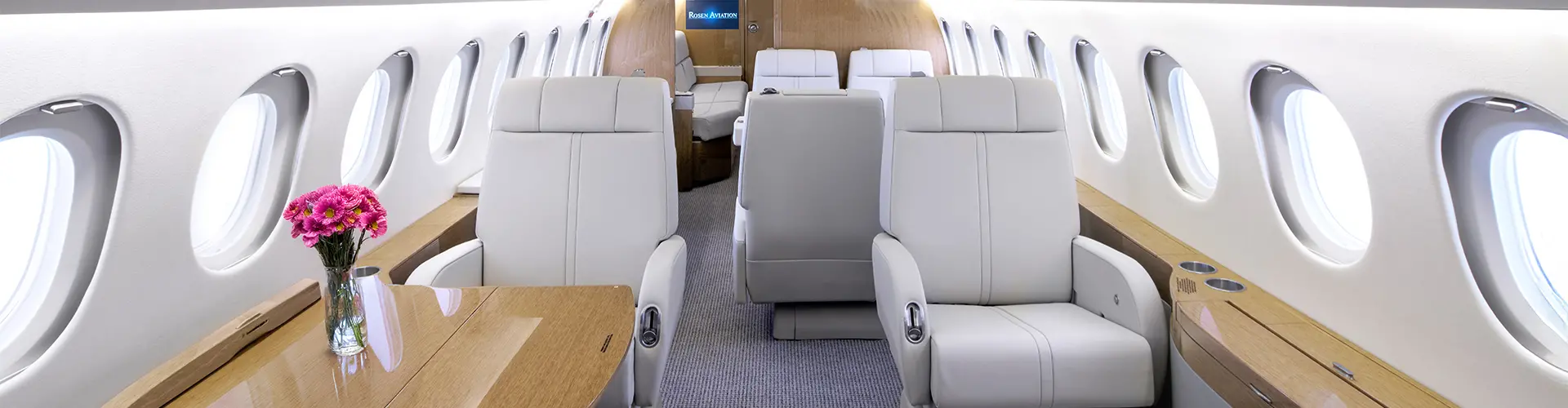 Refurbished interior of Falcon 900 with divan by Duncan Aviation